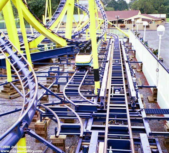 Here is a good view of the transfer track which allows trains to be put on or taken off a coaster's circuit.