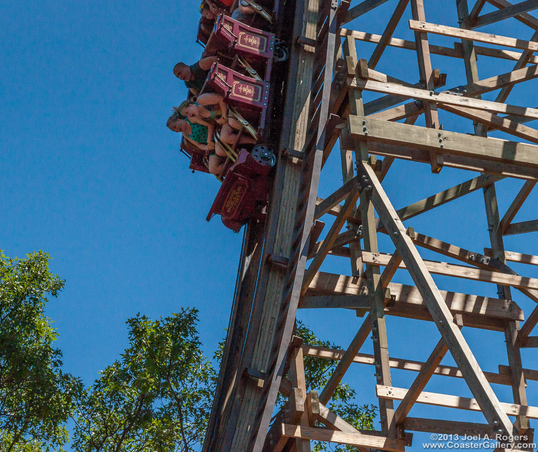 There are two trains on Outlaw Run. Six four-passenger cars are linked to allow 24 riders per train.