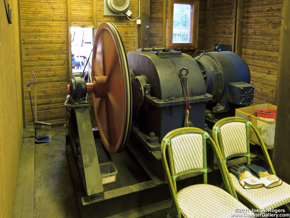 Trains are pulled up the lift hill by a cable lift system. This small room sits below the lift hill. The electric motor on the right