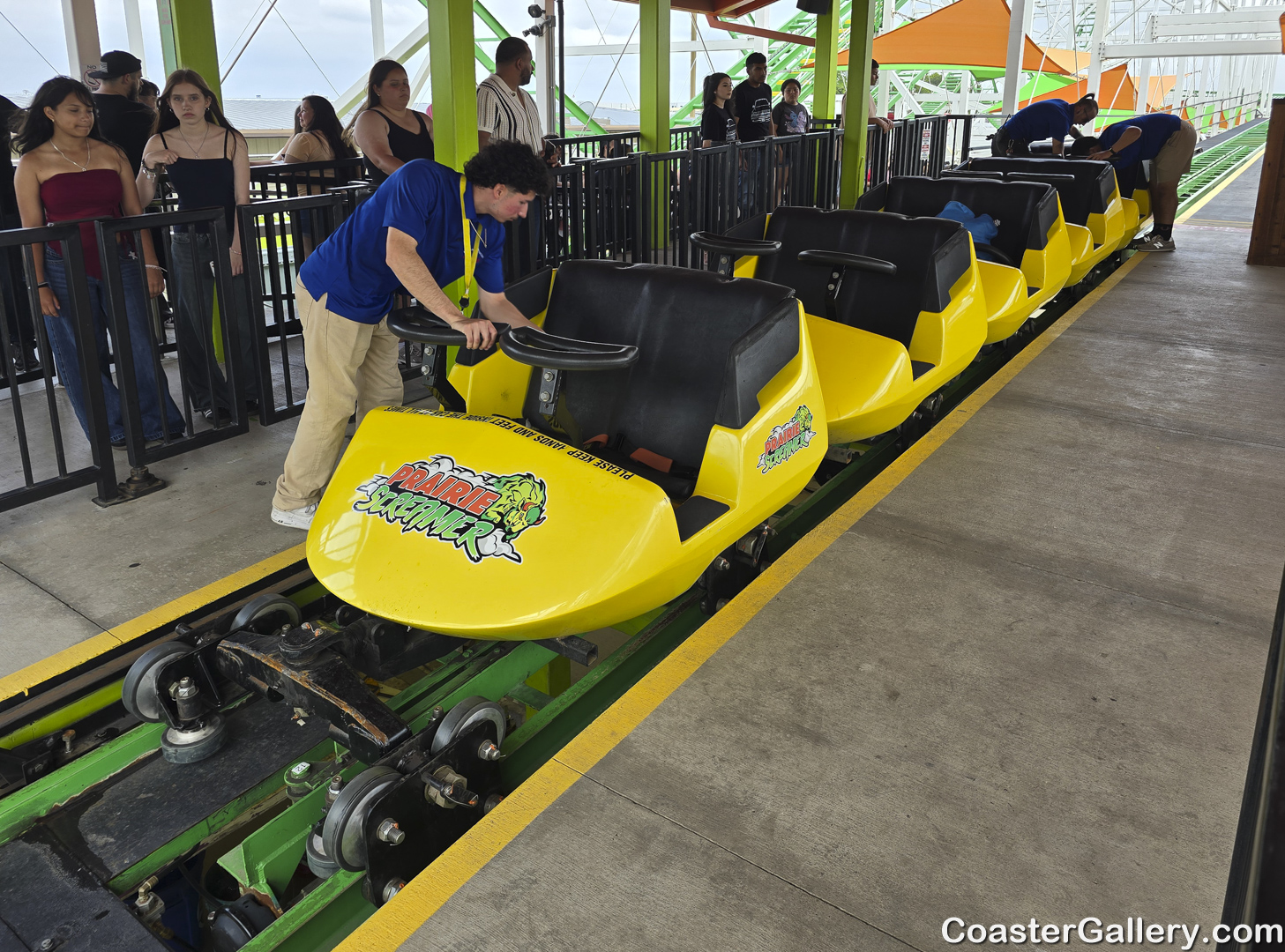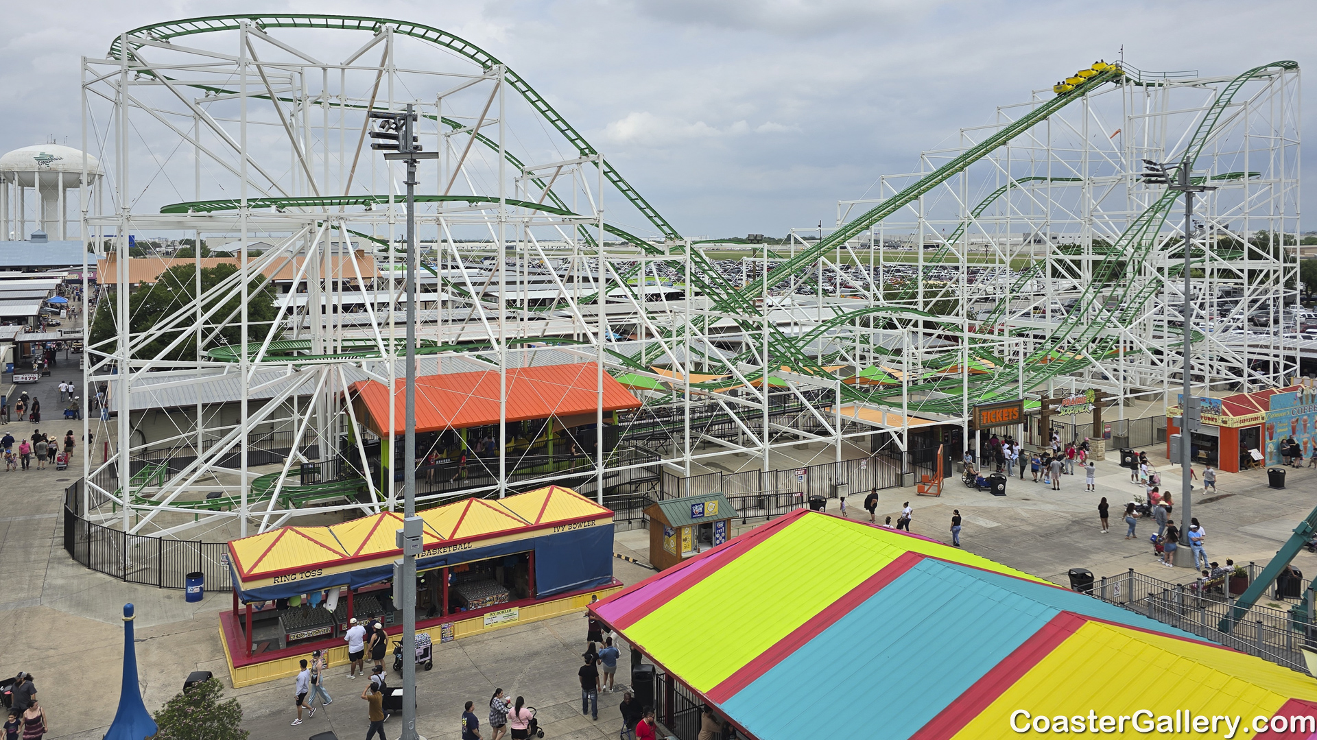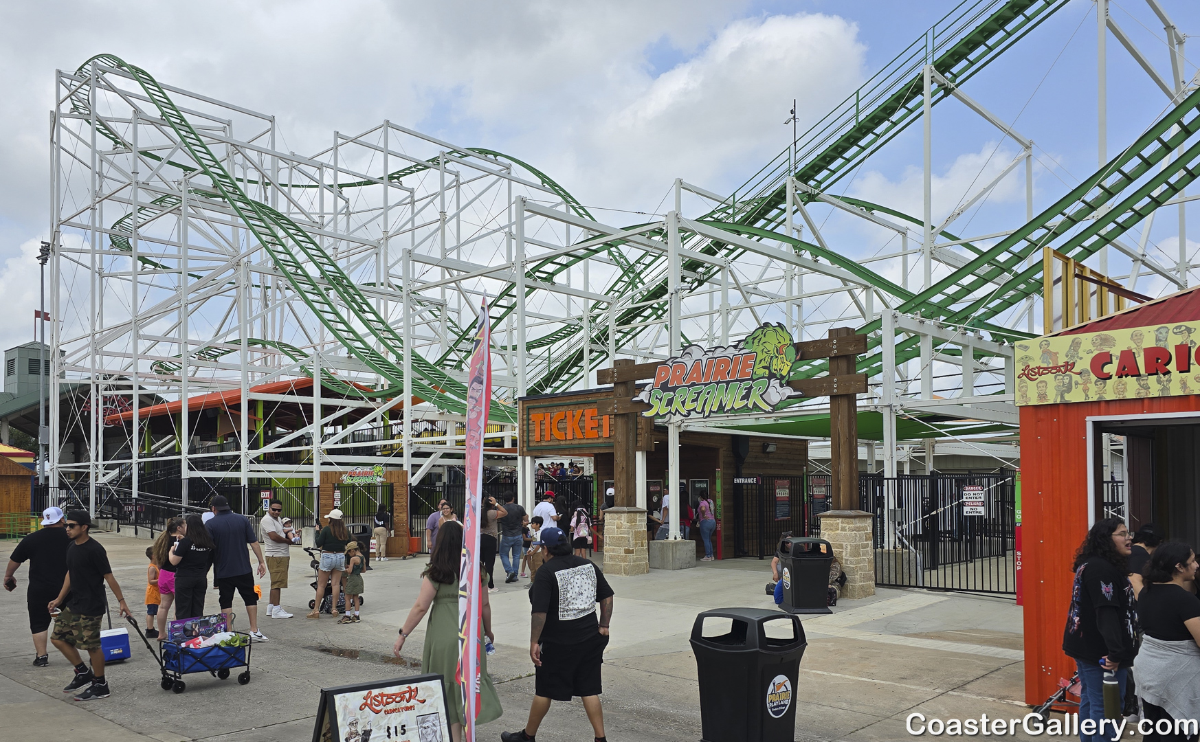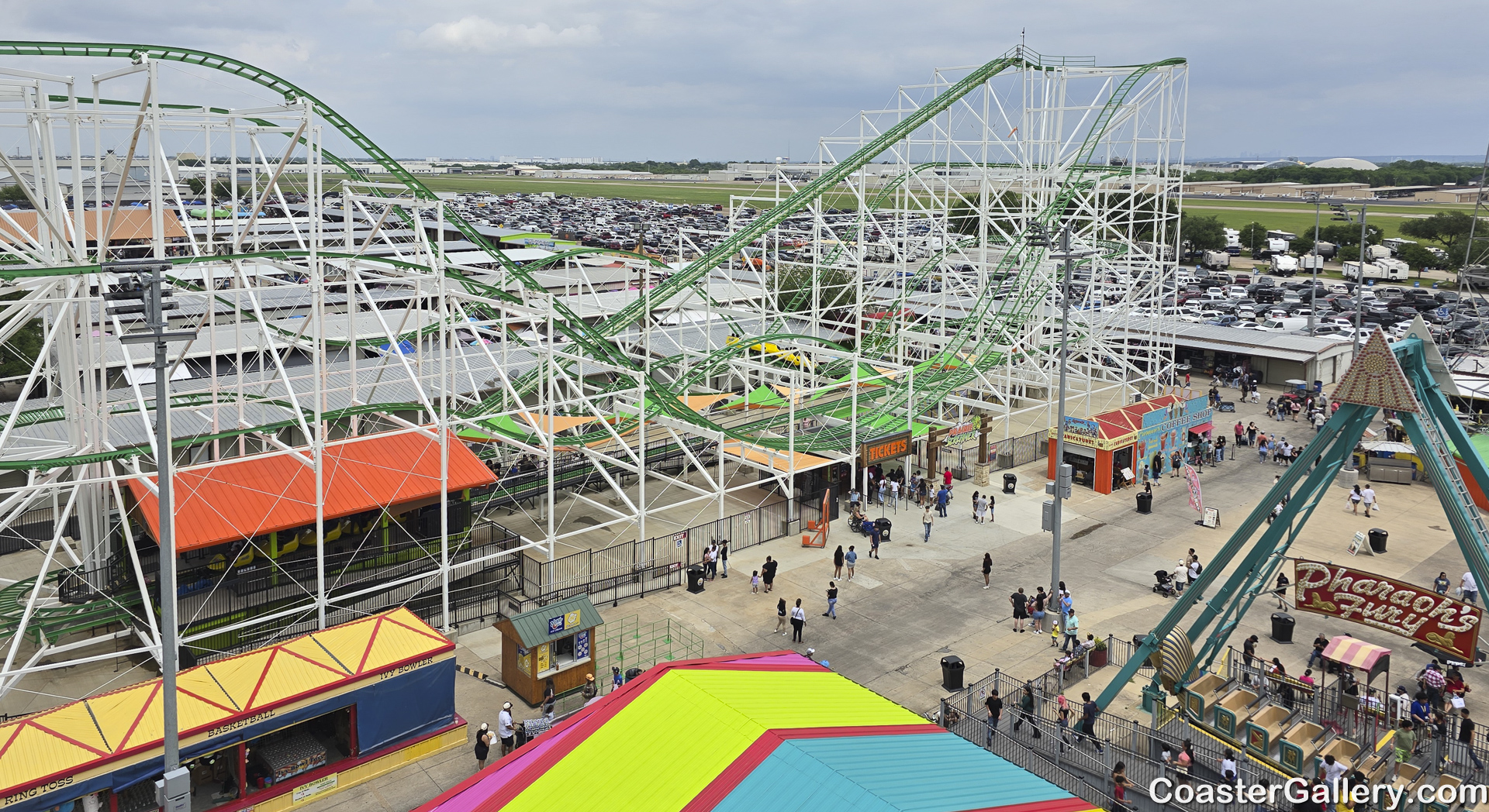 The Prairie Playland collection of rides sits within the massive Traders Village market. The flea market, which sits between Dallas and Fort Worth, opened in 1973 and now covers over 150 acres. More than 3,000 vendors and dealers sell a variety of food, clothes, tools, jewelry, auto parts, toys, antiques, and more every weekend. In addition to an RV park and live entertainment, there is a collection of rides and one roller coaster.